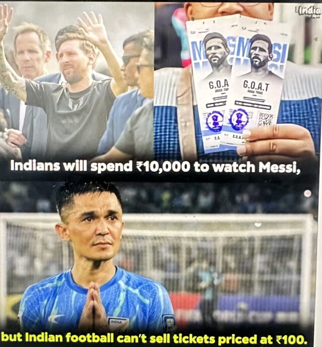 पिछले दो दिनों से अंतर्राष्ट्रीय फ़ुटबाल के मशहूर खिलाड़ी लियोनेल मेस्सी भारत के दौरे पर है, मेस्सी को लेकर बहुत से प्रशंसक उन्हें देखने के लिए महंगी टिकटें लेकर देखने जा रहे, लेकिन जैसा की होता आया है, हमारे देश के असली खिलाड़ी सिर्फ राजनेता है और फिर वो अभिनेता और अभिनेत्रियां जो किसी भी मंच पर चढ़कर भारत का असली दर्शन कराते है.
