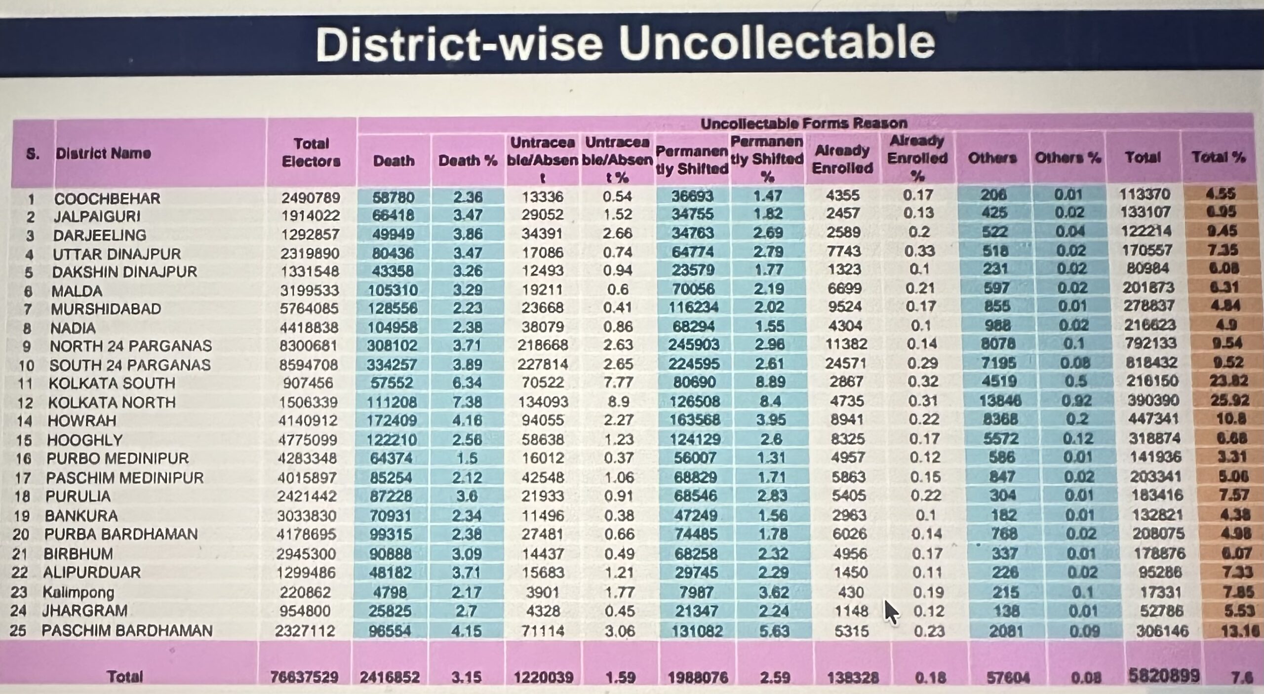 मौजूदा समय में आयोग की देखरेख में पश्चिम बंगाल, तमिलनाडु , उत्तर प्रदेश सहित 12 राज्यों व केंद्रशासित प्रदेशों में एसआईआर का काम चल रहा है। इनमें से आधा दर्जन से अधिक राज्यों व केंद्र शासित प्रदेशों में ड्राफ्ट सूची भी जारी हो गई है। आयोग ने यह कदम वैसे तो मतदाता सूची से जुड़ी गड़बड़ियों को खत्म करने के लिहाज से उठाया है लेकिन इससे पश्चिम बंगाल की सियासत गरमा सकती है।